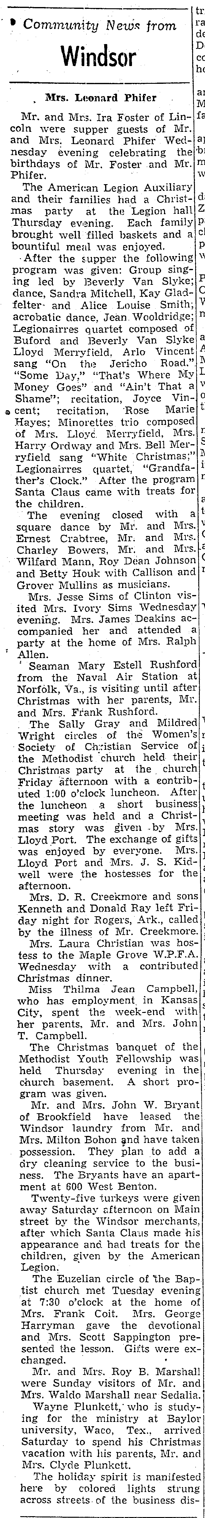 | 31 Dec 1949 Winsor Henry Co Missouri |