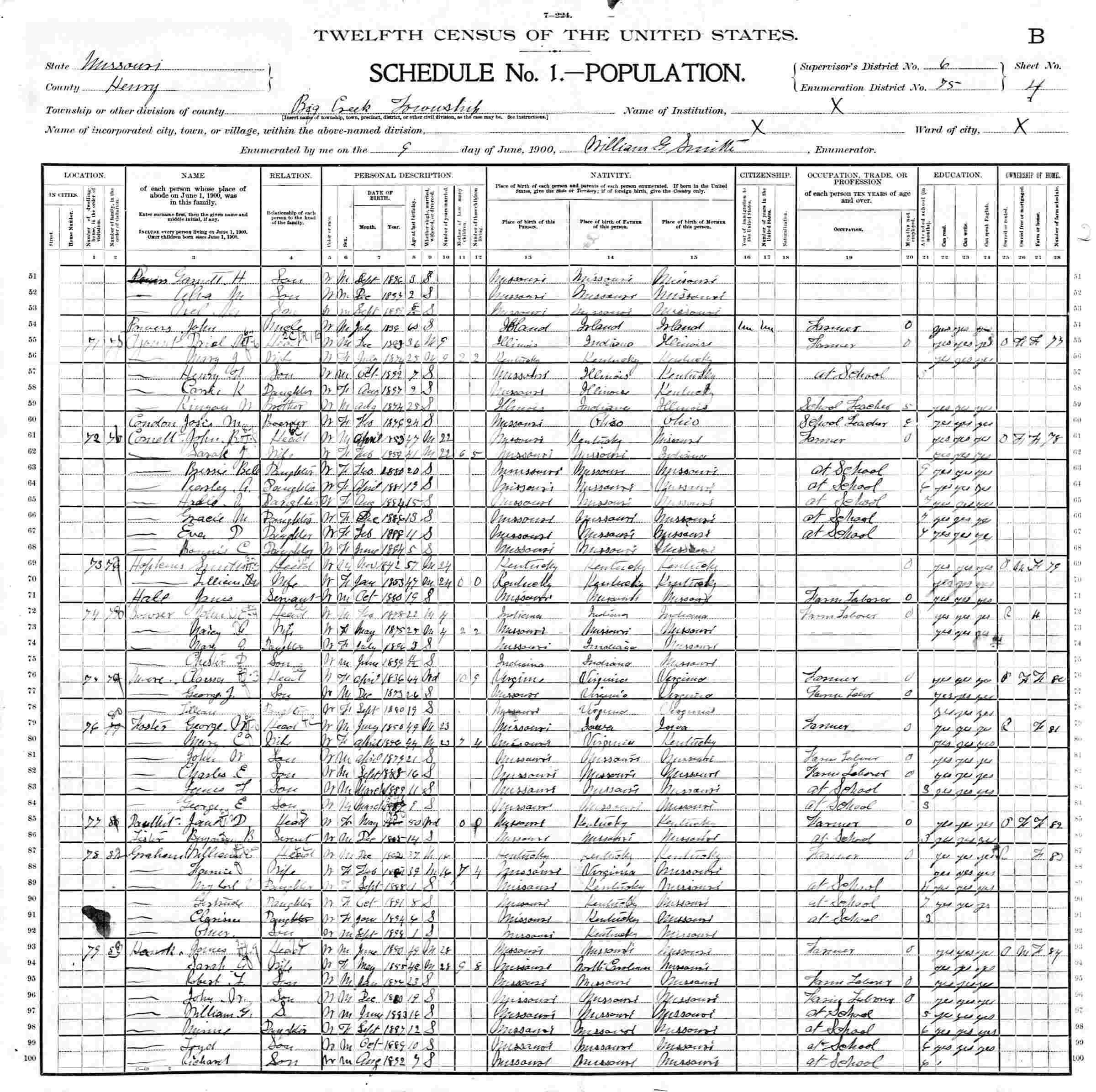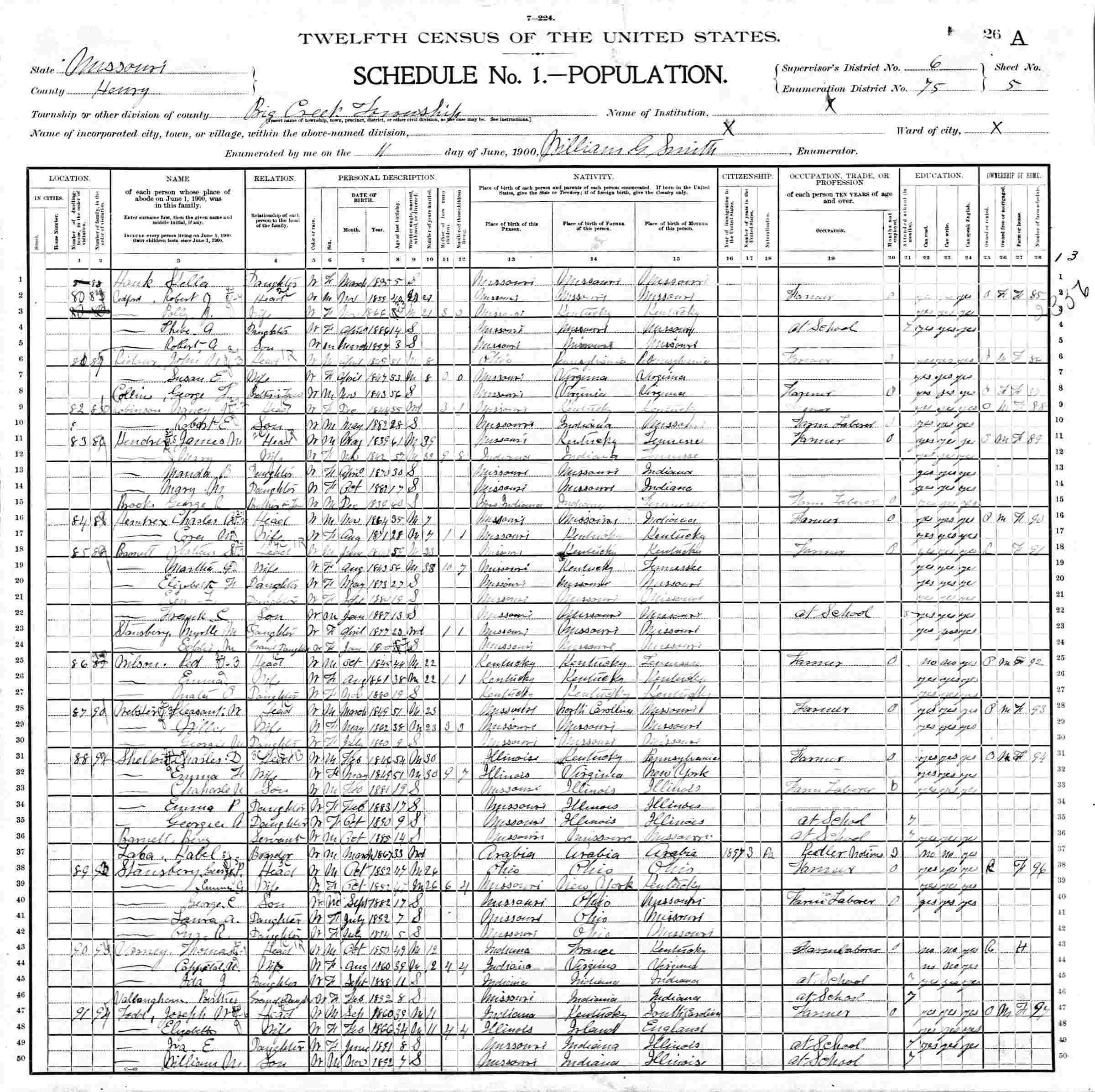 Welcome: After years of hitting road block afer road block from this point back, I decided the best thing for me to do was to map every Houk I could find starting in Missouri. This extensive research taught me to be a pro at finging the impossible. As it turns out most start from George Houk. James was born in Moniteau Couunty Missouri His wife gave birth to 9 children. He worked as a farmer. He died in Washington Township Vernon Co Missouri of arterio Sclerosis. He is buried in Clinton.