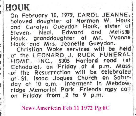 My older sister Jeanne was born in Baltimore, Md to Carolyn Anne Gueydon and