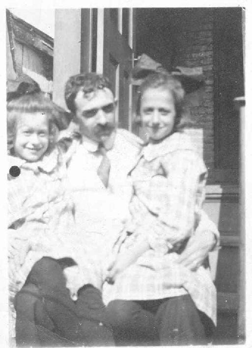 Here he is in the backyard with his two daughters Louise Elise (left)