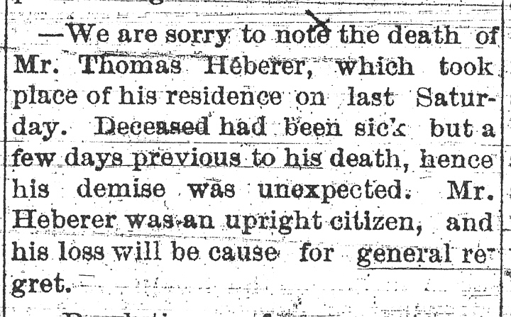 his wife, brother Adam, and sons Ewald and Herman. His son Ewald Heberer died on April 29,1872 the same way.