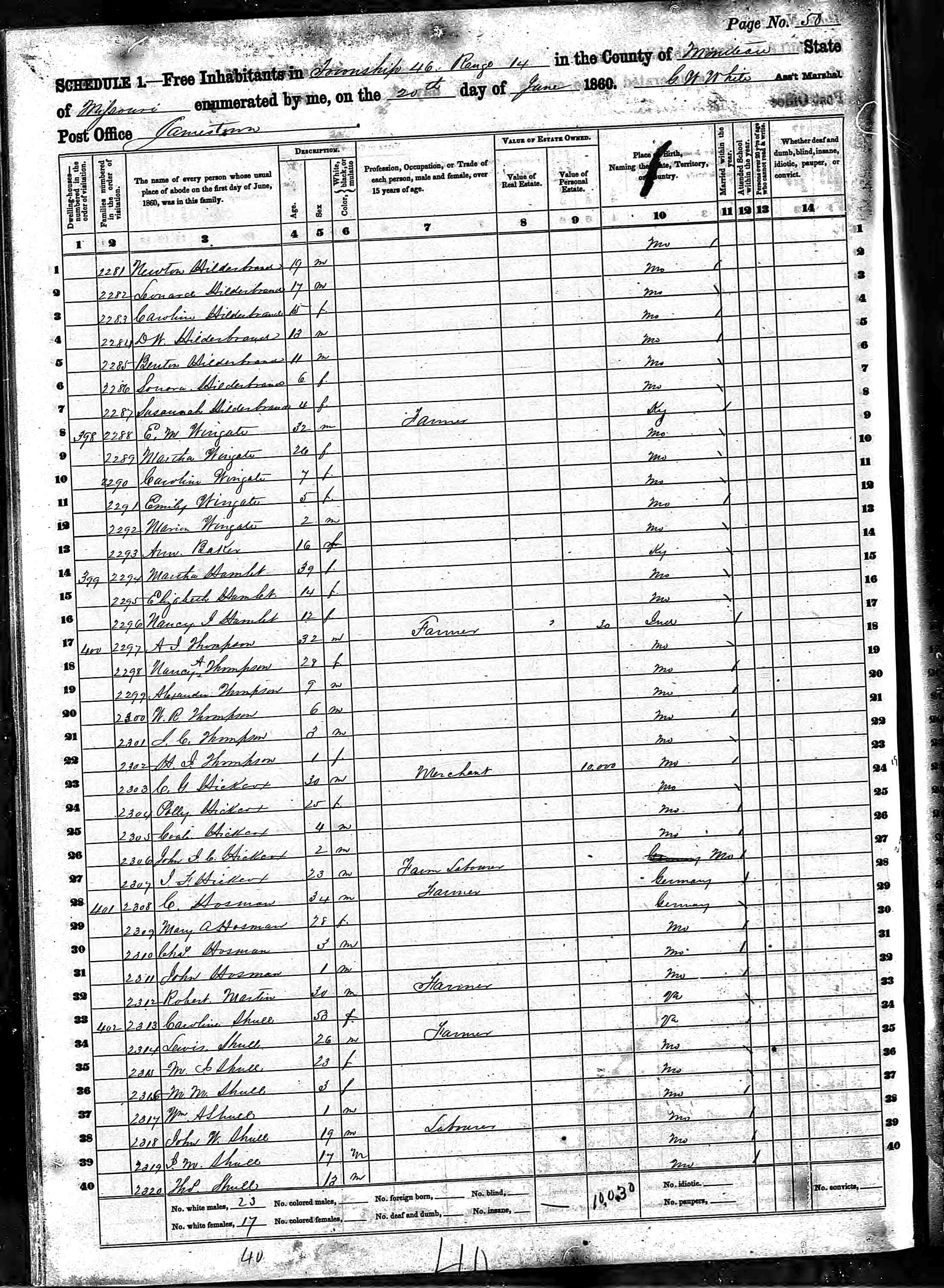| 10 Nov 1850 Moniteau Co Missouri |