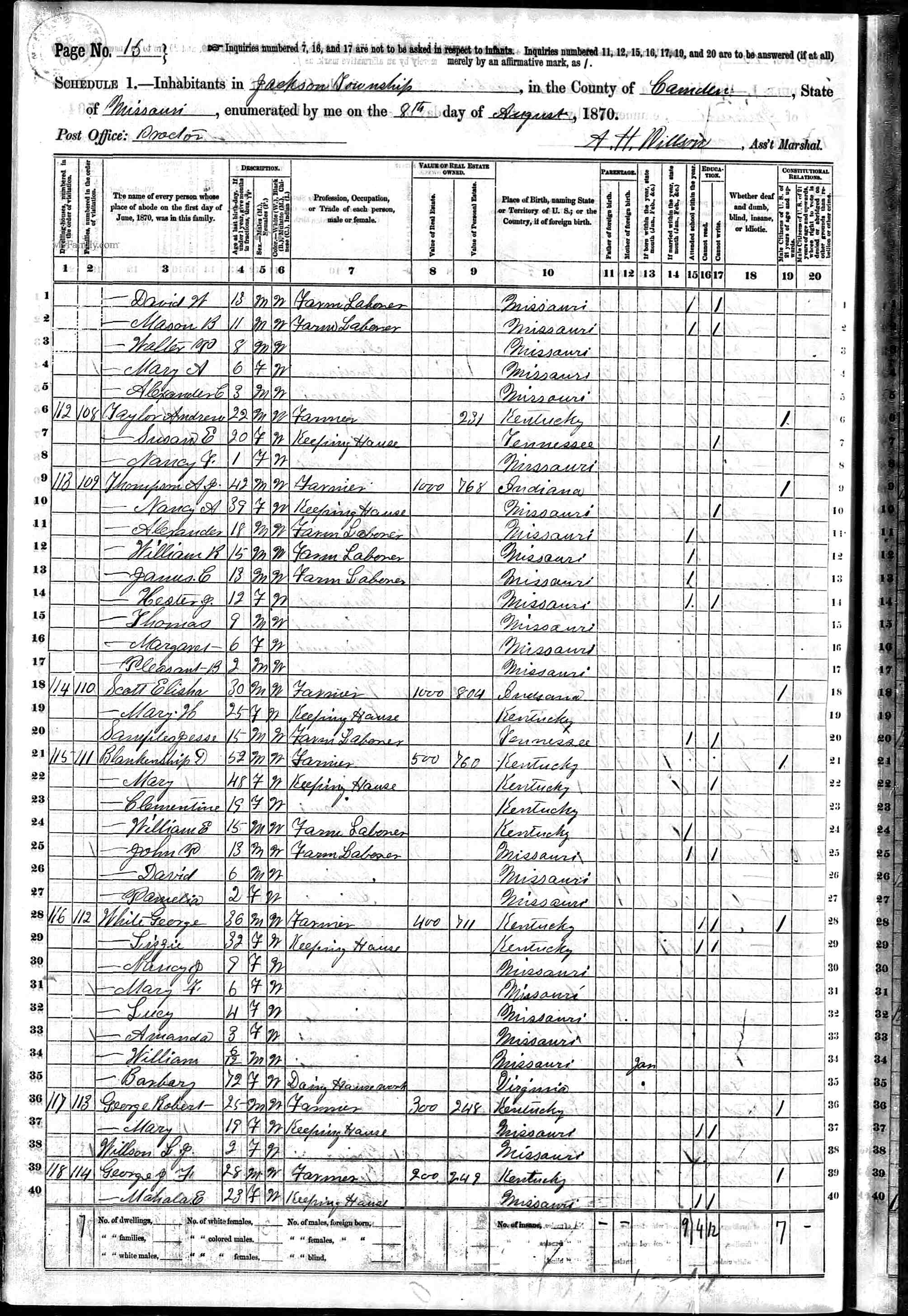 Welcome: This data is was impossible for me to find until Ancestry .com put the Missouri marriage records on line. Once I had the husbands name, I could get copies of the census records below. Most of this information was rechecked on the LDS WebSite. Any other records I find to support this data will be added as it is found and labeled NEW DATA. I am ending my research at this family until I have done more on my own family.