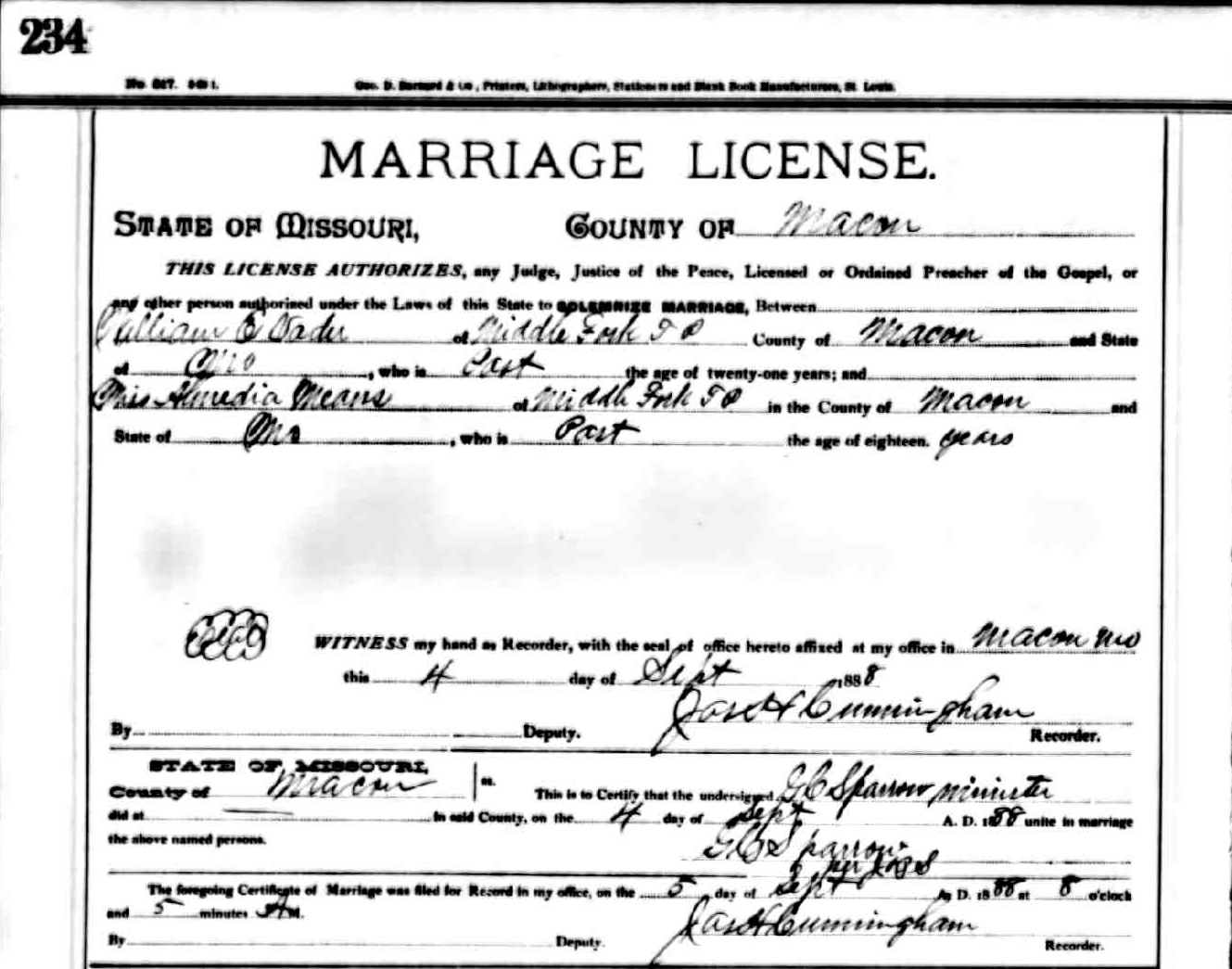 Welcome: This is the first wife of of William Ernest Vader. William had three children from this marriage with Almedia Means. I discovered the Vader Genealogy website created by Elgin Vader. It has everything you could hope for on the Vader family. Check it out! On 04 September 1902 she died.